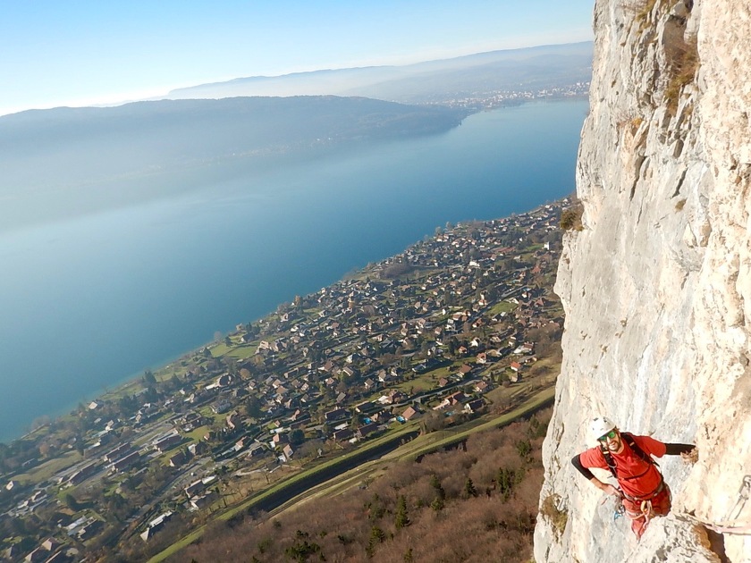 Monté Médio climbing instructors guide you in climbing a long route around Lake Annecy.