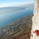 Monté Médio climbing instructors guide you in climbing a long route around Lake Annecy.