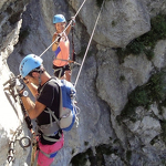 Specific equipment is provided: helmet, harness, via ferrata lanyards, gloves.