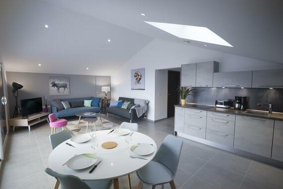 For a few days or longer, enjoy this large 80m² apartment, which includes a main room, two separate bedrooms including a master bedroom with en-suite, a fully equipped kitchen, a separate toilet and a bathroom with tumble dryer and washing machine.