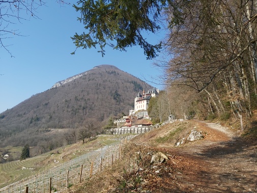 the descent is then made on the hamlets of Bosson and Ramponnet and finally, a beautiful path goes along the young vineyards of the Château de Menthon Saint-Bernard.