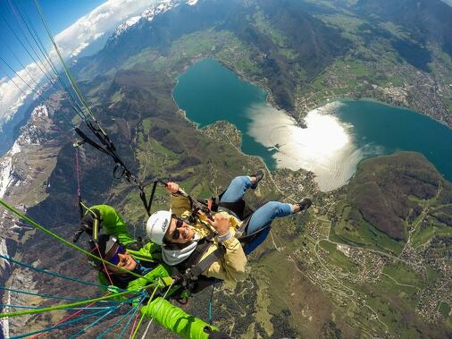 For the past 30 years, at our sites in Talloires and La Forclaz, our paragliding school has been offering tandem flights and courses for beginners and improvers, all year round.
